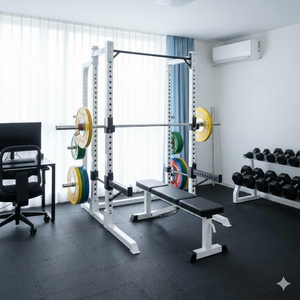 そこで決意しました。自宅の**「5畳」**の妻のテレワーク部屋の一部スペースを、パワーリフティングのトレーニング空間に変えることを。